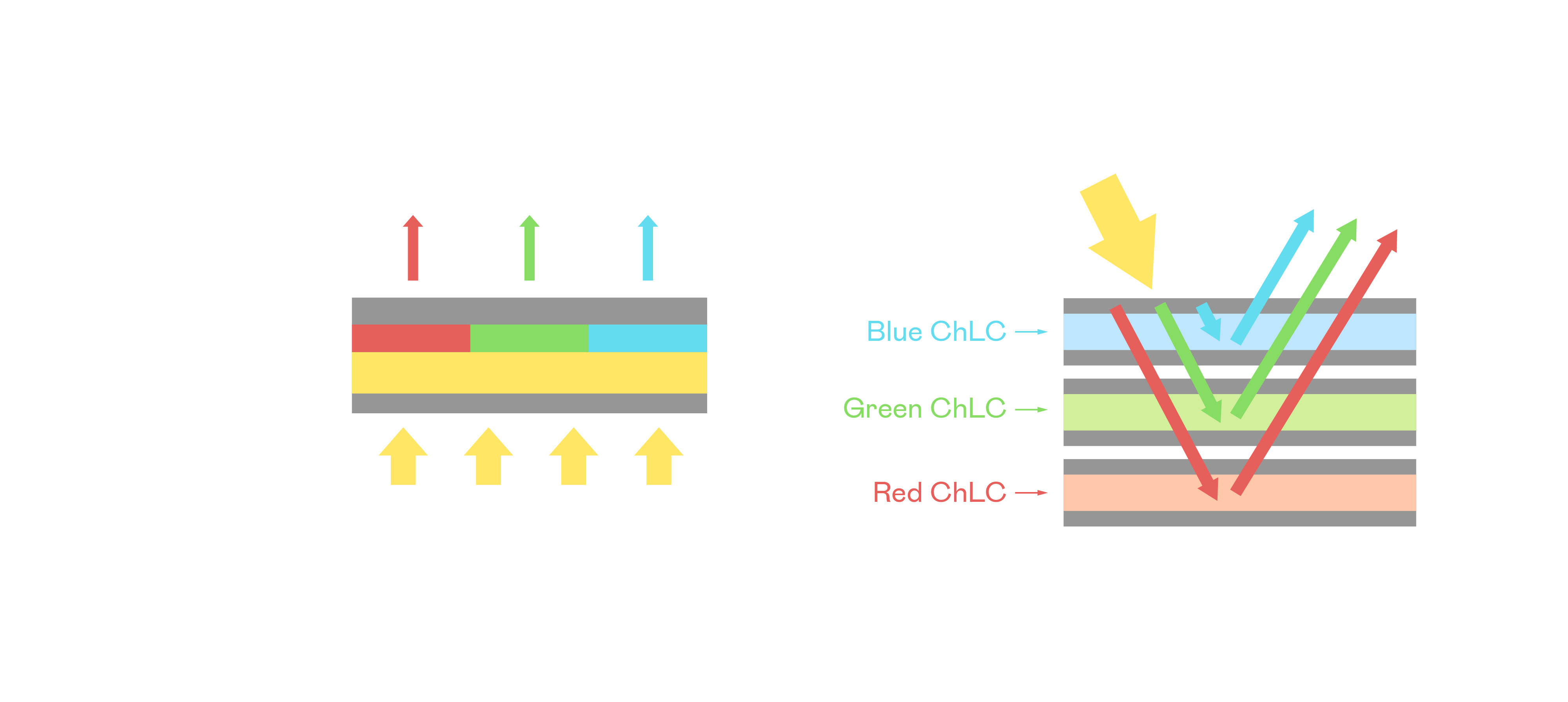 金年会- 金字招牌胆固醇液晶显示器是由红、绿、蓝三层胆固醇液晶面板堆叠而成,并采用无彩色滤光片设计,减少环境光在反射过程中的损耗。